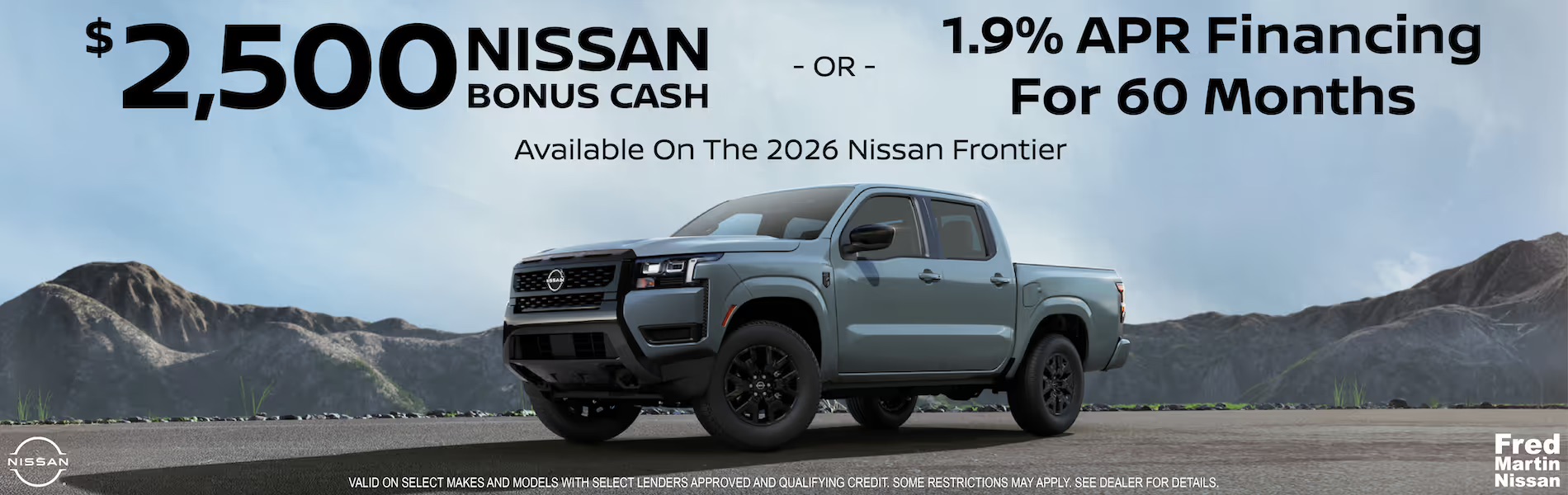 Frontier specials at Motive Nissan USA showcase rugged performance paired with intelligent technology. These offers highlight Frontier's durable capability for work and weekend adventures, backed by Nissan's Intelligent Mobility philosophy. Stay connected and confident behind the wheel with NissanConnect and available driver-assistance features that help monitor surroundings and support safer driving. Each offer is designed to deliver practical value without compromising the trusted reliability Frontier owners expect. Explore current Frontier specials, schedule a test drive, or build yours online today.